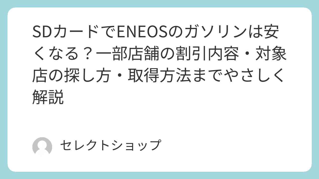 この記事では、SDカードの基本から、ENEOSでの優遇内容の見方、利用前に気をつけたいポイントまで、初めての方にも分かりやすく整理していきます。難しい言い回しはできるだけ避けながら、日常の節約にどうつなげればいいのかをやさしく見ていきましょう。